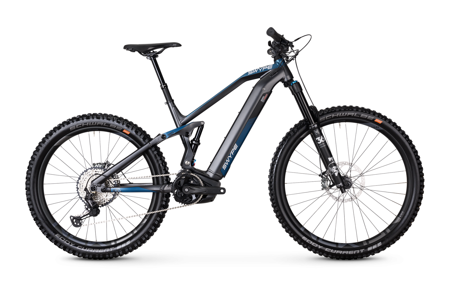 - Topmodel: FOX Fahrwerk – FOX 36 FLOAT speziell für E-Bikes plus FOX FLOAT DPS Performance Dämpfer ab Werk auf das SWYPE Bike abgestimmt